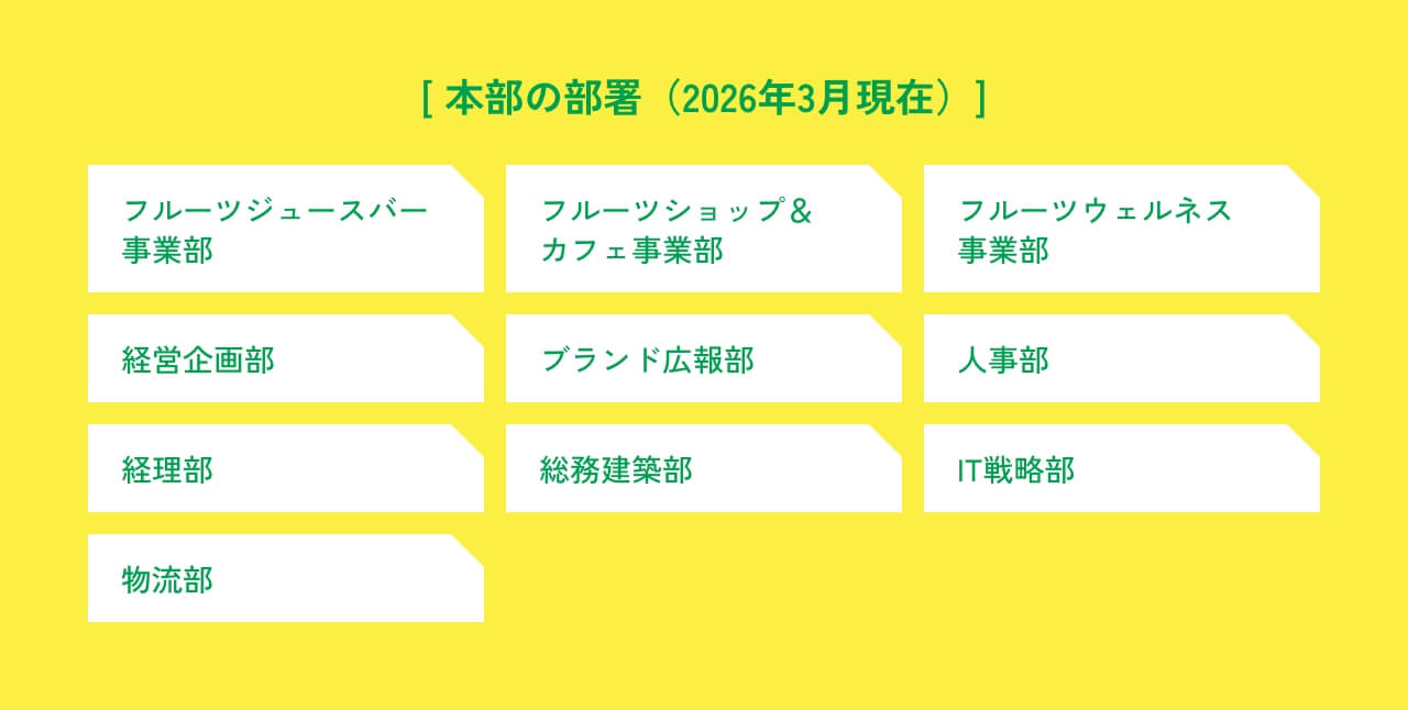 店舗や工場、各事業部が力を発揮できるよう、企画と仕組みで支えるのが本部の役割です。商品開発や販促で「次のヒット」を形にし、新規出店では立地や条件を詰めて未来の売場をつくる。調達・物流で品質を守り、ITやデジタルで販売の導線を整え、人事・経理・経営企画で会社の土台を固めます。関わる人も多く、調整や締切、数字の責任は決して軽くありません。それでも、自分の企画や仕組みが現場を動かし、社会にフルーツの価値を広げていく――そんな手応えがある仕事です。